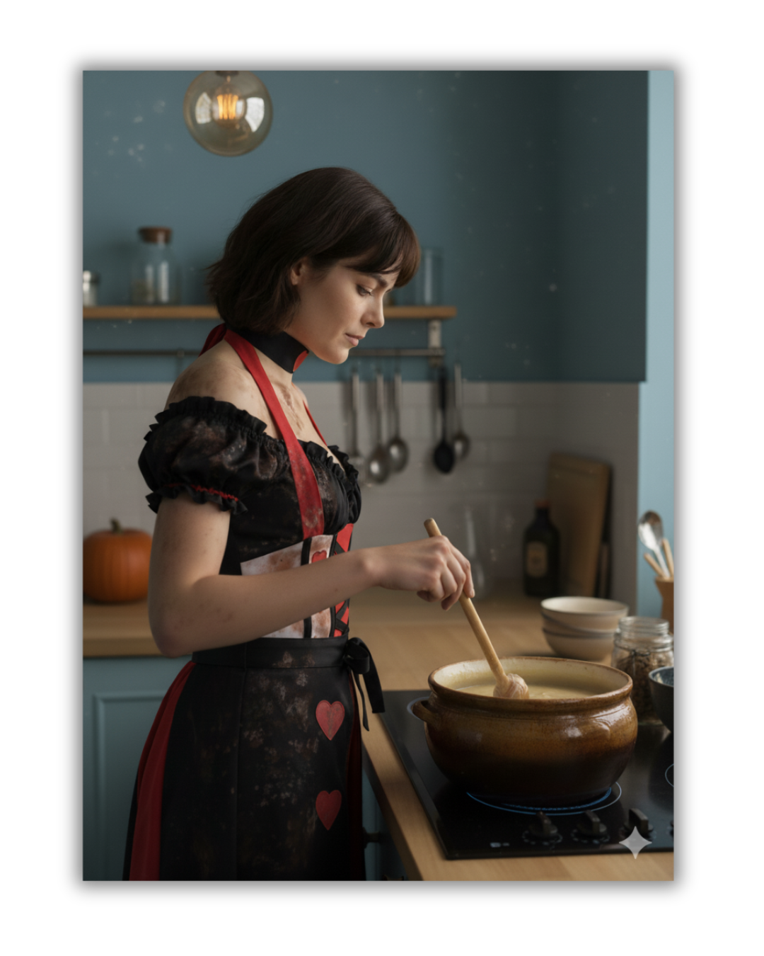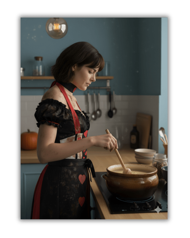 By the time they reached her apartment, the adrenaline had finally begun to ebb, leaving her limbs shaky and her thoughts too loud. She unlocked the door, half-aware of how surreal it felt to bring him home like this — still in her Queen of Hearts costume, crown long gone, corset laced tight against smoke-stained skin.