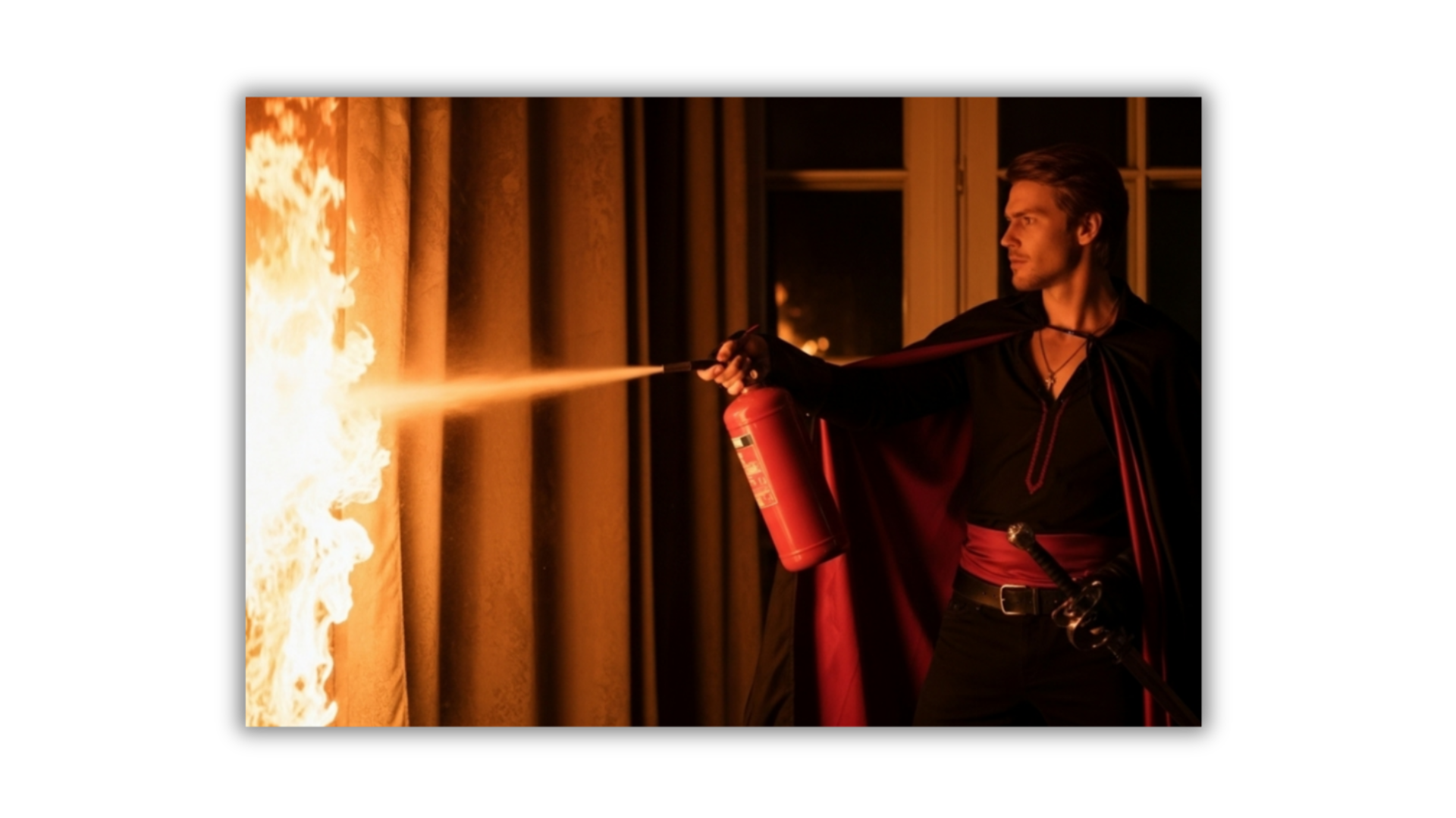 Vaughn sought Carrie’s gaze. Neither hesitated. Vaughn vaulted over an overturned chair still smoldering at the leg, landed hard, and checked that the steps below weren’t on fire. “Clear path!” he called back, offering his hand to Carrie who was right behind him.